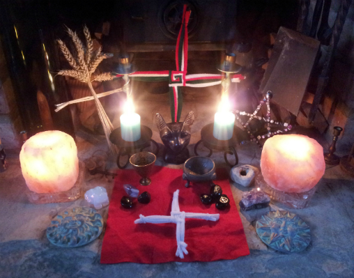 You don’t have to have any tools at all if you don’t want to, a finger pointed with intention can work just as well as any Athame or Wand! Paganism and Witchcraft are very much based around the individual. You don’t even need to have an altar if you don’t wish to. If you do, it very much depends on what you are going to use it for whether or not you want any “tools”. Some use it for all their rituals, prayers or spellwork, some just as a quiet place for contemplation or meditation. It can be as elaborate or as simple as you wish. I have seen some that have everything listed below (and more) and some just consisting of items that have meaning to the individual person. Some have a large dedicated space, some a tiny corner of a window sill, some permanent and some temporary. Some have candles, seasonal flowers, gemstones, feathers or Goddesses and Horned God statues. It really is a personal choice about what, if anything, you decide to have. However, the following items are usually thought of as traditional:-