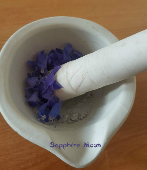 Now I have tried the above method of making Blue Witches Salt and it does look blue while you are making it but once it dries (as it will), it fades to a pale blue green colour. I tried extra food colouring, more and darker blue flowers but it still looked the same when dry. You may find this is perfectly acceptable for your intended use and if so, your work is done.