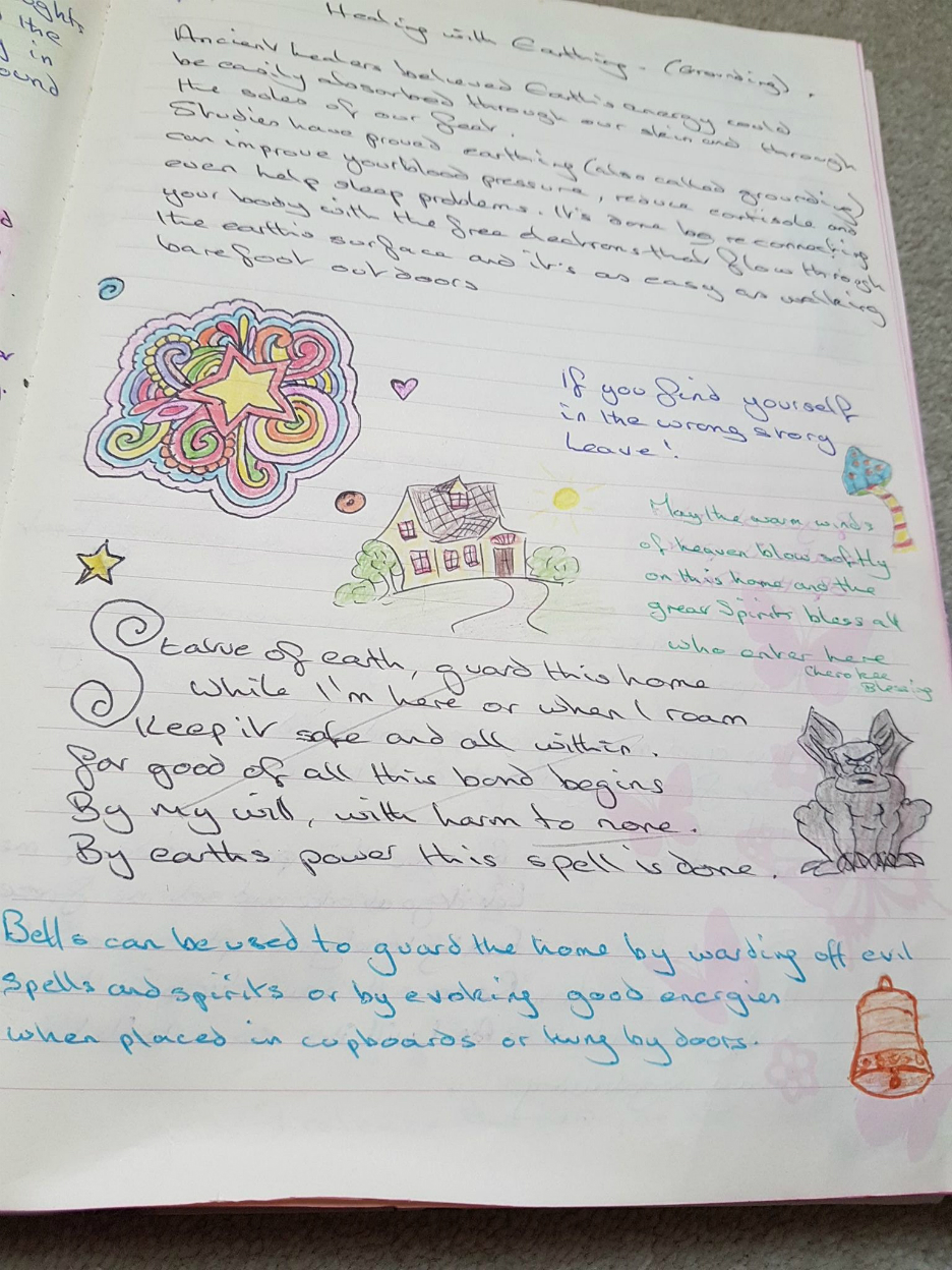 BOS PICTURE Statue of Earth Page from my Book of Shadows There are a few faint lines drawn through the Statue chant as I was going to transfer everything to my new BOS. However, once I decided to keep both books, I left this one intact. Share this: Click to share on Facebook (Opens in new window) Facebook Click to share on X (Opens in new window) X Click to email a link to a friend (Opens in new window) Email Like Loading...