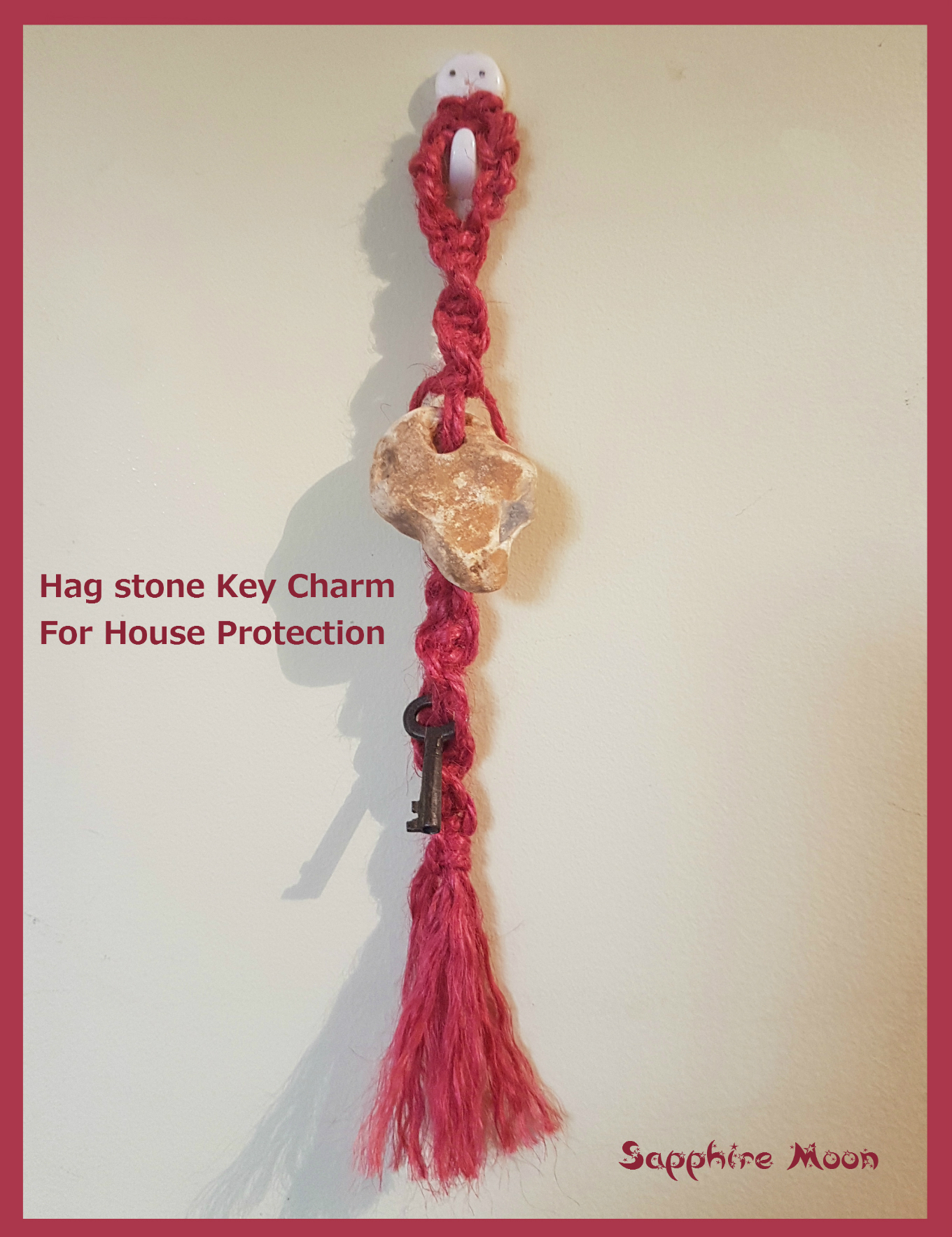 Hang a key and hag stone onto red cord for House protection. It is said this charm will keep your home safe when locked.